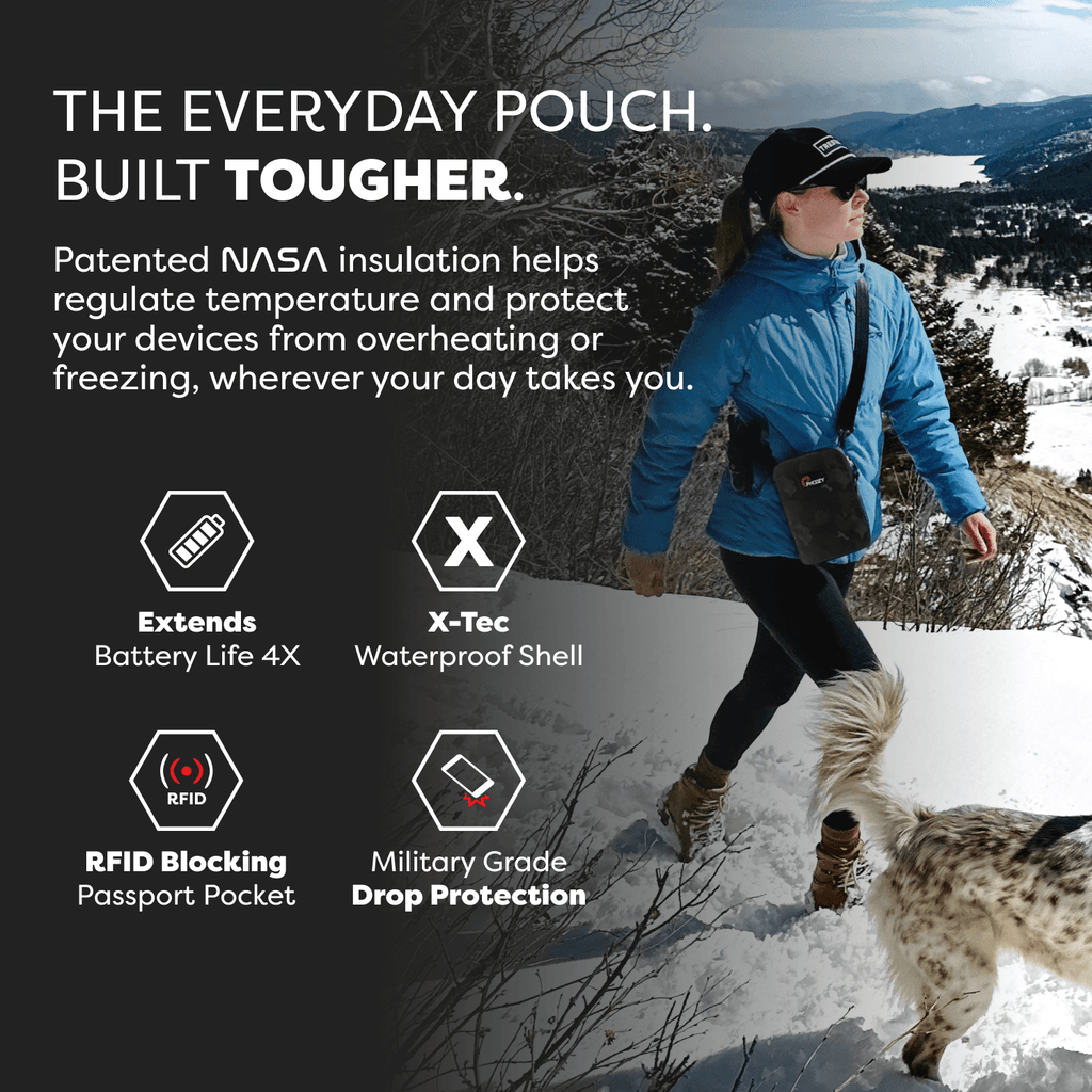 The Ultimate Adventure Travel Pouch. Lightweight, rugged, climateproof, and secure for every day carry and protection of your essentials. Fits any size phone with room for your charging cords, credit cards, passport, sunglasses and other every day carry items.
